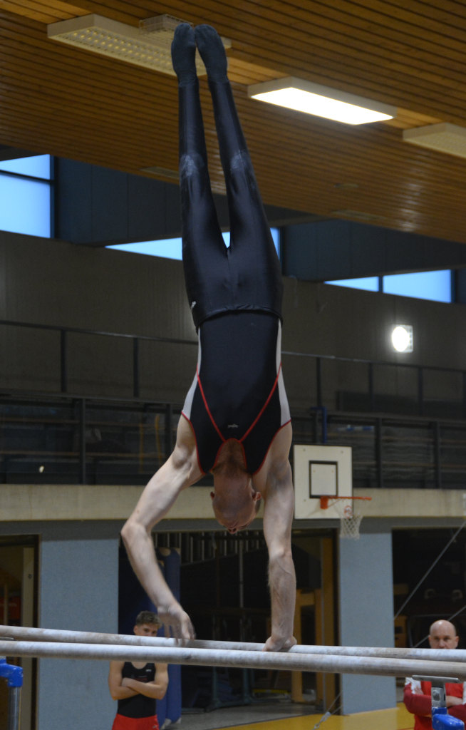 Ähnlich deutlich war der Unterschied am Barren, wo die Gäste deutlich mehr Schwierigkeit und damit mehr Ausgangswert auf die Holme brachten. Dennoch waren alle unsere Übungen solide vorgetragen und erreichten teils erheblich mehr Endwert als beim Wettkampf vor einer Woche.