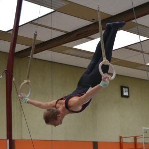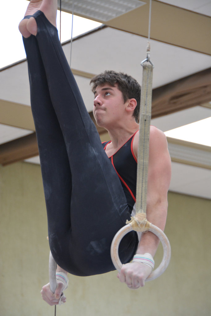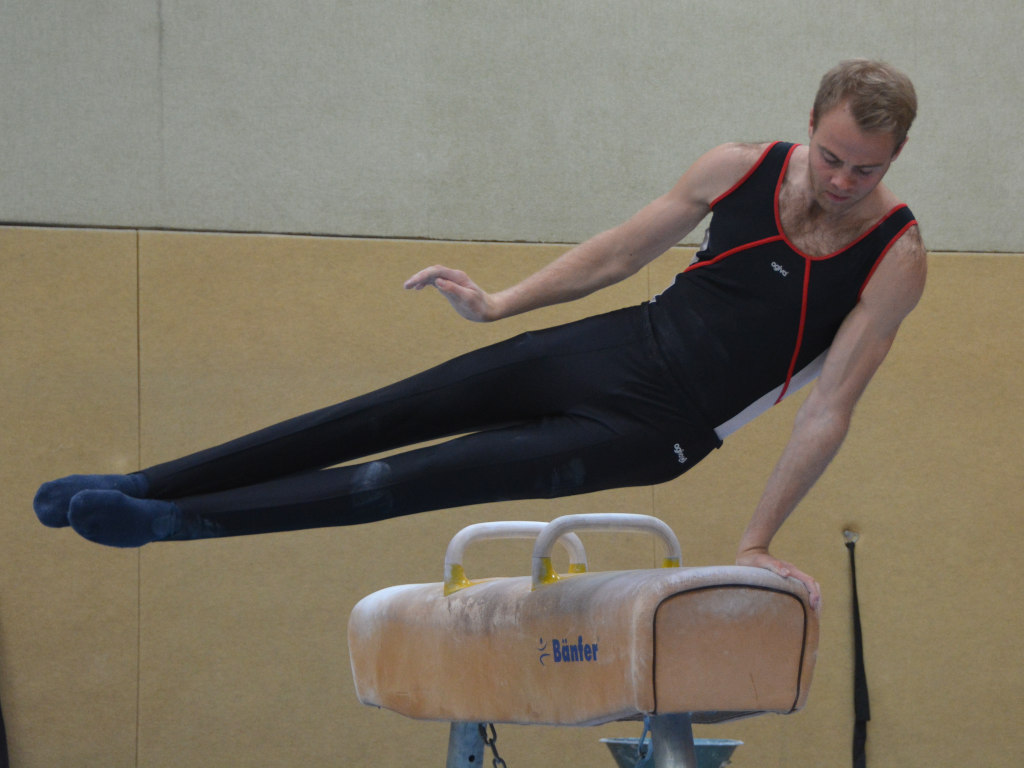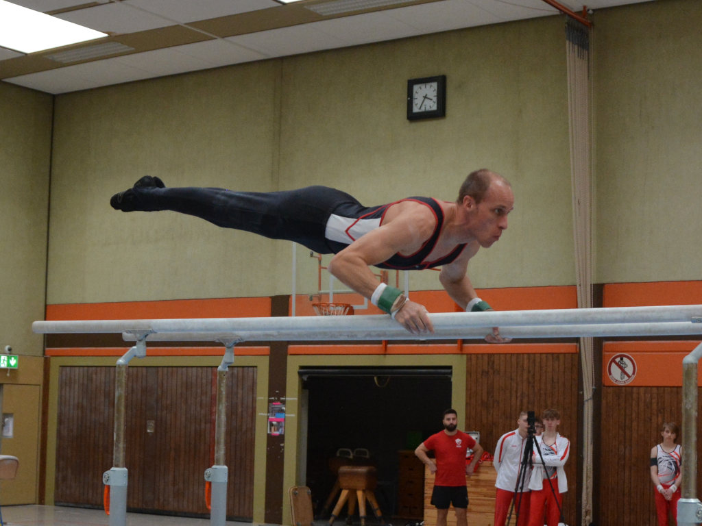 Oskar und Jakob turnen wieder Boden. Besonders Oskar erwischte einen guten Tag und kam in die Wertung. Tatsächlich hatten aber auch die jungen Stockumer seit der letzten Saison ordentlich dazugelernt. Weit weniger Punkte als erwartet konnten ihnen am Pauschenpferd abgejagt werden, und das obwohl Philipp eine phänomenale 13-Punkte-Wertung erhielt. Trotz dass Thorsten die beste Ringeübung seiner Saison zeigte, schlug sich das nicht in einer ordentlichen Wertung nieder. Nach den Ringen lagen beide Mannschaften praktisch gleichauf. Den Sprung entschieden die Stockumer verdient für sich. Am Barren turnten Olaf, Philipp, Patrick und Thorsten alle solide durch und nahmen den Gastgebern einen halben Punkt ab. Der Gleichstand war quasi wieder hergestellt. Für das Reck erwarteten wir, allein schon anhand des Vorsprungs in der Schwierigkeit von anderthalb Punkten einen deutlichen Ausgang, aber die Ausführung überzeugte das Kampfgericht (beide aus Bochum) nicht. Stockum schickte als Schlussturner ihren Trainer Jannis Darvish an die Stange, der den Sack zumachte. Trotz ähnlicher Leistungen wie gegen Coesfeld reichte es diesmal nur für knapp 197 Punkte, Stockum triumphierte mit 0,55 Punkten Vorsprung.