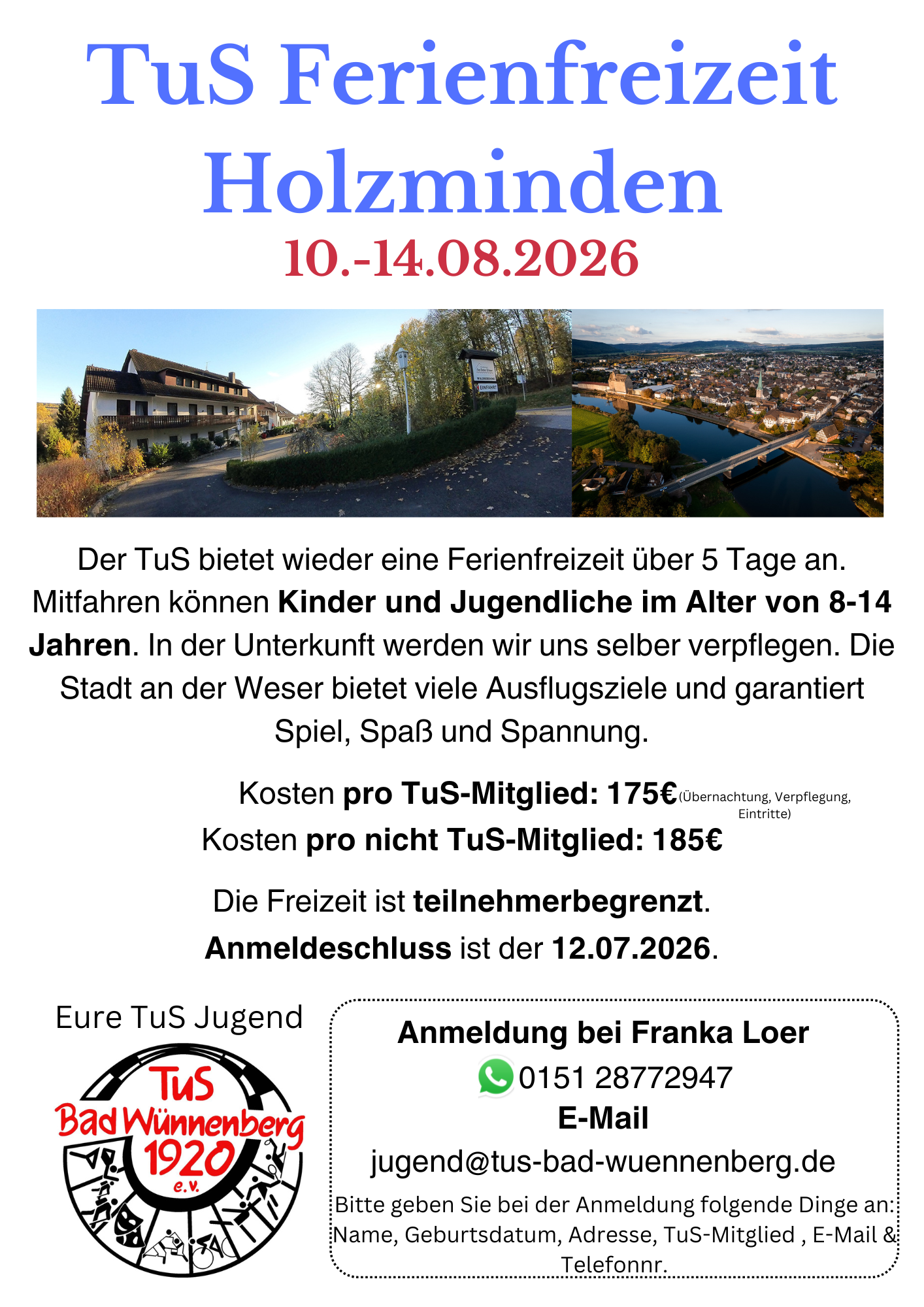TuS Ferienfreizeit 2026 – jetzt anmelden!