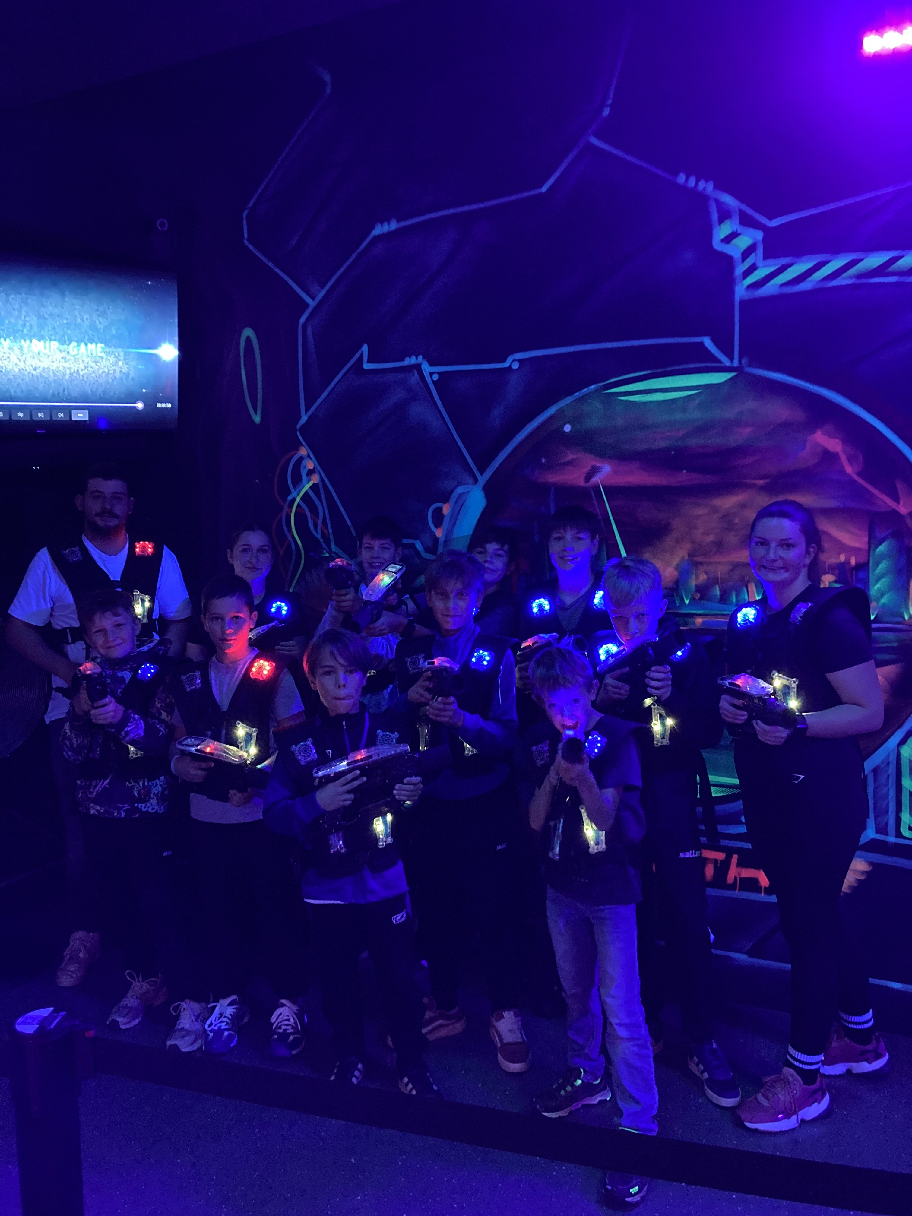 Bei strömendem Regen hatten wir auf jeden Fall die beste Beschäftigung: LASERTAG! Die drei BetreuerInnen und 9 Jungs haben in 4 Runden Lasertag alles gegeben. Anschließend ging es noch in 2 Gruppen über die 3D-Schwarzlicht-Minigolf-Bahn. Wir hatten einen lustigen Tag voller Spaß und Action!