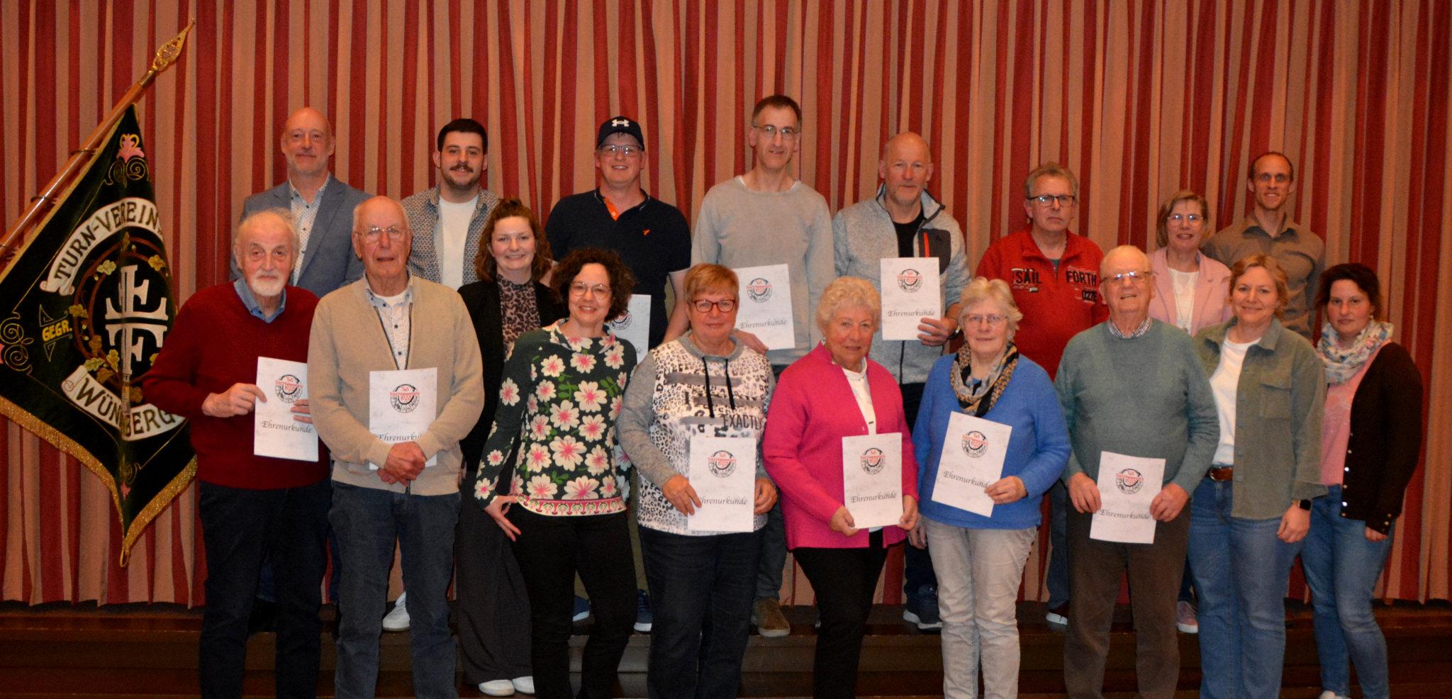 Traditionell wurden auch langjährige Mitglieder und verdiente Funktionäre geehrt. Für 40jährige Mitgliedschaft geehrt wurden Rene Bielefeld, Silke Borghoff, Tanja Borghoff, Winfried Weiß, Michael Rieger, Hans-Joachim Albrecht, Markus Fingerhut, Andrea Hermann und Ingrid Nacke. 50 Jahre Mitglied im Verein sind Jörg Bettermann, Annegret Bürger, Rudolf Ebbers, Heidi Hegers, Marita Löer, Stefan Loer, Norbert Salmen, Ursula Thebille, Gertrud Tölle, Johanna Wördehoff, Annegret Funke, Sabine Griese-Schulte, Dirk Gerlach, Egon Gerlach, Konrad Renneke, und der Vorsitzende Wolfgang Ebbers. Bereits 60 Jahre halten Christof Beck, Karl Scharfen, Alois Sticht, Elisabeth Bonefeld, Gertrud Schäfer und Gerti Zeisberg dem TuS die Treue. Alwin Ebbers und Winfried Kleinschnittger sind schon 70 Jahre dabei. Ein volles Dreivierteljahrhundert ist Johannes Bonefeld bereits Mitglied im TuS. Der geschäftsführende Vorstand des TuS mit einigen Jubilaren